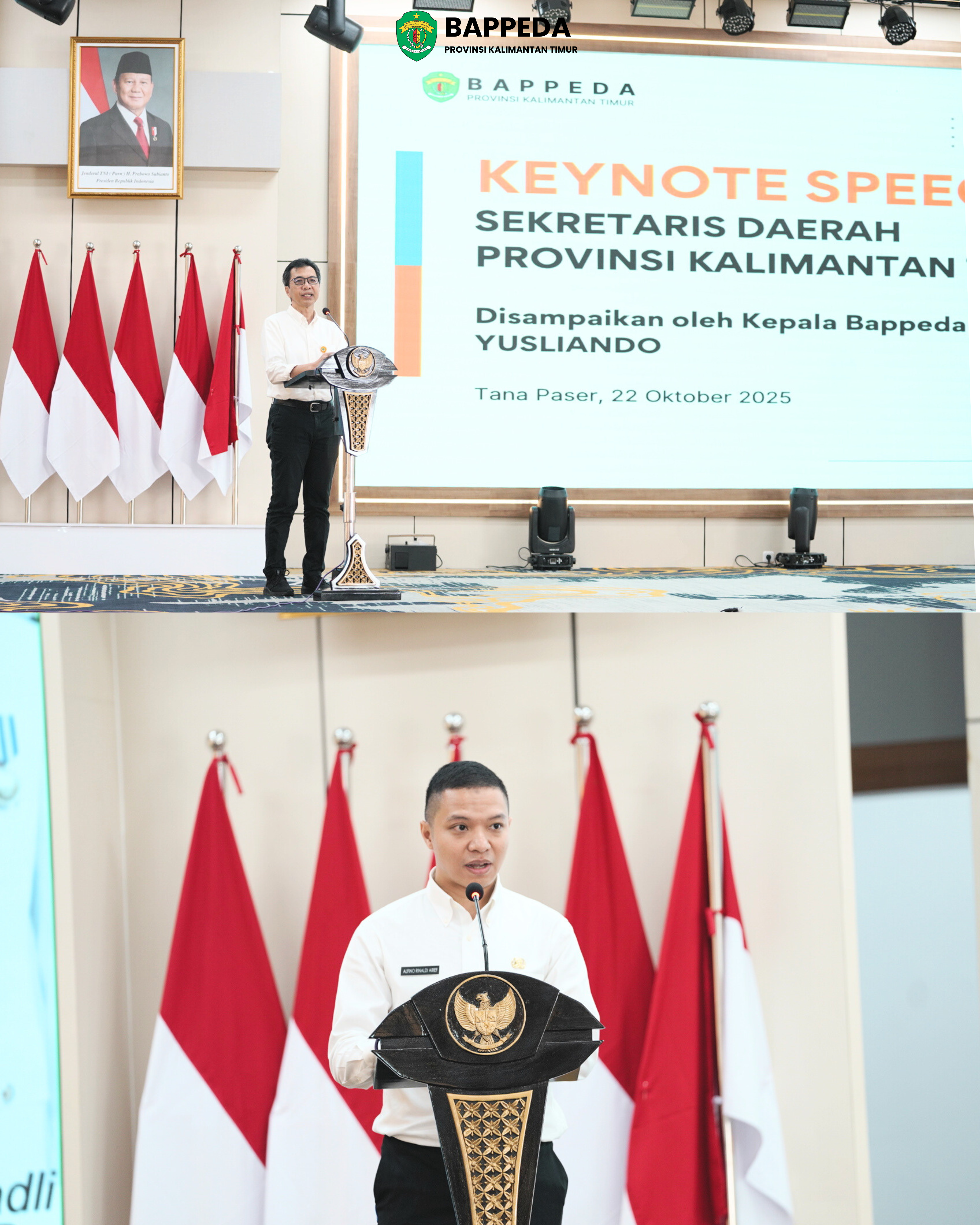 · Bapak Nazarudin, mewakili Kepala Diskominfo Provinsi Kalimantan Timur yang akan membawakan materi dengan tema “Mewujudkan Satu Data Kalimantan Timur melalui Integrasi Geoportal JIGD Kaltim”; dan