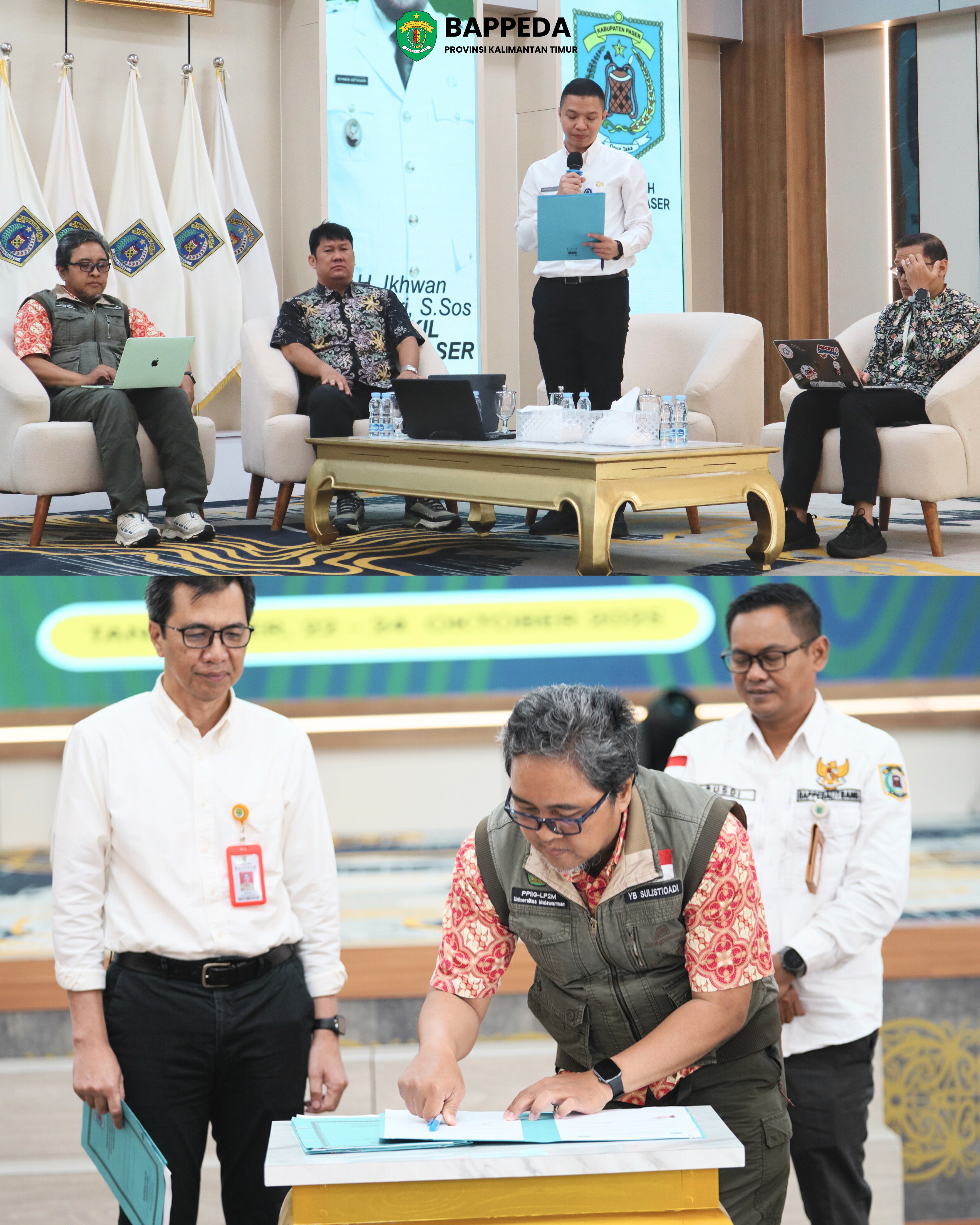 Acara pada siang hari dilanjutkan sesi panel dengan moderator Kabid P2EPD Bappeda Provinsi Kaltim, Alfino Rinaldi Arief yang menghadirkan 3 narasumber yaitu: